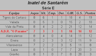 No passado fim de semana, a equipa da ADR "O Paraíso", levou de vencida no seu reduto (Campo Tavares Pinto) a equipa da Ereira, por 3 bolas a 2. Apesar da equipa forasteira ter conseguido empatar a duas bolas já na segunda parte depois de ter estado a perder por 2-0, não conseguiu impedir que o médio Bruno Costa, sentenciado a partida com o 3 golo para a equipa de Vale do Paraíso. De realçar a bela replica que a equipa da Ereira mostrou neste embate, no entanto não foi suficiente para levar alguns pontos de Vale do Paraíso.Numa tarde de inspiração do avançado da ADR, Nuno Albano, que rubricou uma excelente exibição coroada com dois golos, um deles de belo efeito, mais uma vez a equipa da casa demonstrou que no seu reduto é uma equipa temível, mantendo assim em aberto as suas pretenções de apuramento para a fase seguinte do Inatel de Santarém.
